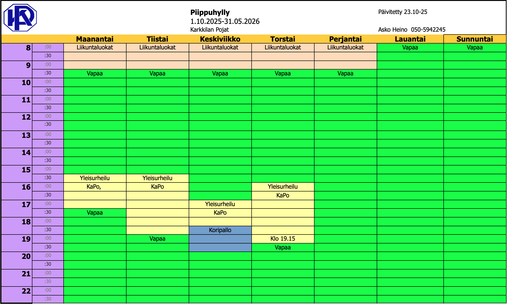 Laittakaa viestiä osoitteeseen arto.heino@karkkila.fi, niin Arto ohjelmoi lätkät.